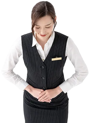 葬儀場で胸に手を当てて立っている男性スタッフ